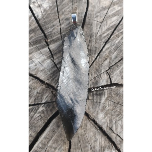 FLECHE D OBISIDIENNE BRUTE - TALISMAN WICCA - Flèche d obsidienne noire brute taillée à la main, collier pendentif forme pointe, pierre naturelle noire obsidienne, création artisanale unique, bélière métal couleur argenté