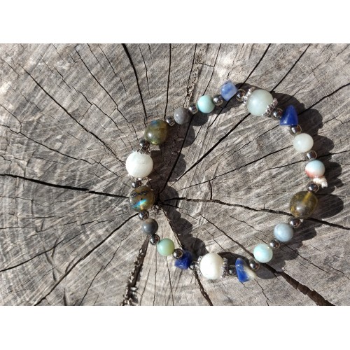 Bracelet pierre naturelle labradorite, sodalite, amazonite et pierre de lune