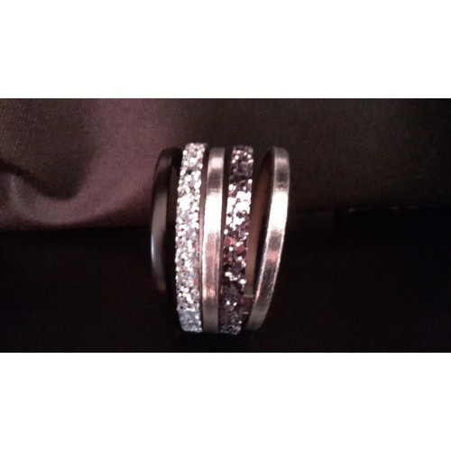 Bracelet cuir manchette - noir et argent pailletté - modèle Féerie
