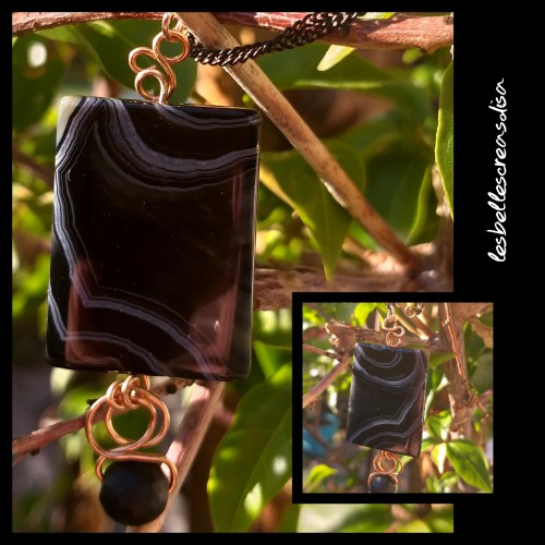 COLLIER AGATE WIRE WRAPPING - PIERRE DE CHANCE - TALISMAN - Collier wire wrapping perle agate naturelle - pendentif agate et fil de cuivre- technique du fil enroulé - cordon ciré de couleur noir