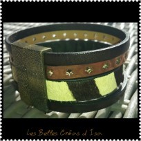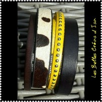 Bracelet cuir "Cow Girl" noir et jaune