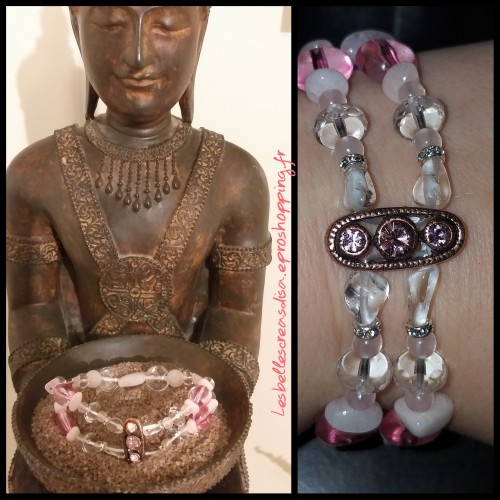Bracelet cristal de roche quartz rose et améthyste
