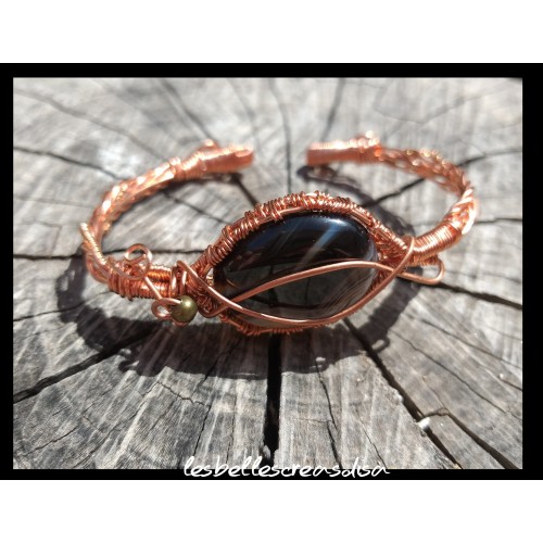 JONC FAIT MAIN EN CUIVRE ET PIERRE NATURELLE ONYX - BIJOUX LITHOTHERAPIE ARTISANAL - BIJOUX FEERIQUE - Bracelet artisanal wire wrapping - bracelet jonc cuivre et Onyx - bijoux entièrement réalisé à la main - pièce unique - bijoux femme - bracelet de créa