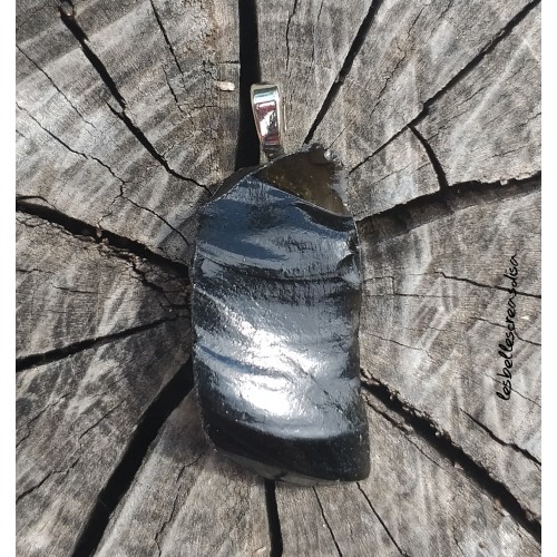 PIERRE NATURELLE MEXIQUE ET ALU MADE IN FRANCE - COLLIER EN OBSIDIENNE NOURE BRUTE - PIERRE TAILLEE A LA MAIN - IDEE CADEAU ORIGINALE ET UNIQUE - PROTECTION WICCA -Pendentif en pierre naturelle d'obsidienne brute, taillée à la main , bélière en aluminium