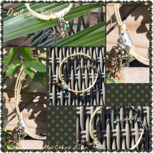 Bracelet en cuir et perle oeil de taureau