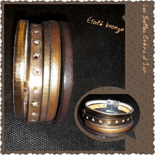 Bracelet en Cuir Marron et Bronze "Etoilé" - promotion
