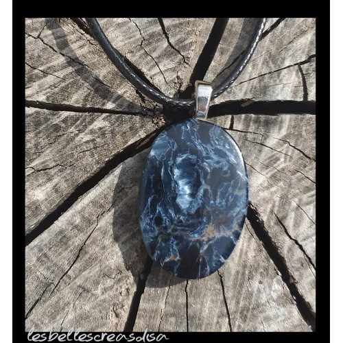 PIETERSITE NAMIBIE - PIECE UNIQUE - Magnifique Piétersite irisée de Namibie , collier piétersite cabochon ovale 22.5 carats - bijou pierre fine femme - 27x18x5mm - chakra solaire - justesse d esprit stimulation chakra - oeil d aigle