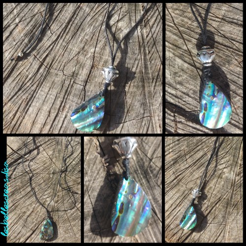 COLLIER ABALONE - SIRENE DES ILES - Collier Abalone- Paua- cabochon monté en collier - serti aluminium noir- pendentif réalisé entièrement à la mai - bijoux créateur - modèle unique et fait main