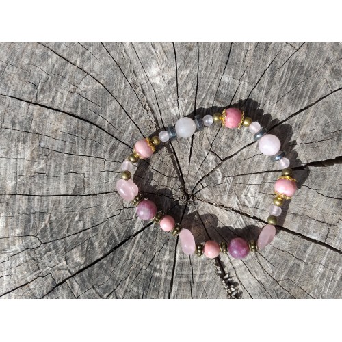 Bracelet en pierres naturelles rose- "être en forme et gaie comme un pinson" Quartz rose, Lépidolite, Hématite et Rhodocrosite