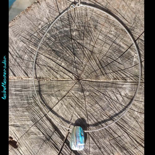 Collier ras de cou - métal et pendentif coquillage paua , abalone