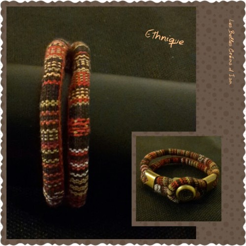 Bracelet en coton - ethnique marron rayé