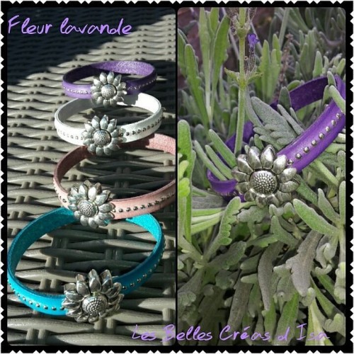 Bracelet cuir Fleur Lavande / Violet - Modèle Fleur Lavande - ou Turquoise