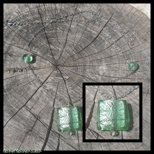 Sautoir chaîne métal et perles verres vertes