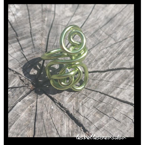 Bague lacets vert anis, fil aluminium vert anis métallisé lisse, entre lacet d amour de fil, bague femme , bague aluminium, bijoux nouveauté, mode automne hiver