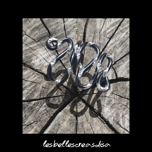 Bague aluminium noire ciselée argenté, bague aluminium made in France- bijoux créateur- modèle unique et fait main - bague femme motif serpent - motif fantaisie zigzag