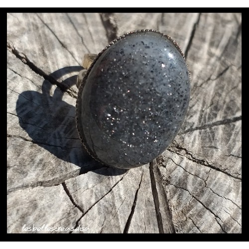 PIERRE DE SOLEIL NOIRE - BAGUE PIERRE DE SOLEIL - BAGUE PIERRE NATURELLE - Pierre de soleil noire , bague réglable, bijoux femme ovale , mode automne hiver
