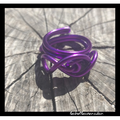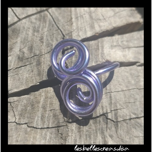 Bague mauve métallisée spirale aluminium, bijoux femme fait main, modèle unique, taille 62, pièce unique 1 seule pièce disponible
