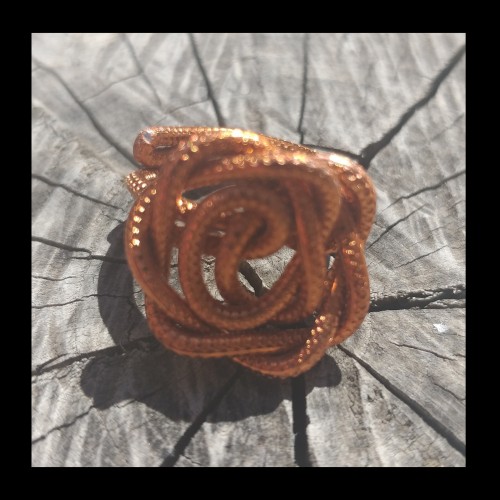 Collection automne hiver , bague fleur cuivrée, fleur rose bague aluminium ciselé , bague rose réglable cuivré, pièce unique fait main