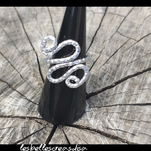 Bague femme aluminium gris argent ciselé- forme originale serpent - motif fantaisie- création unique et fait main- idée cadeau