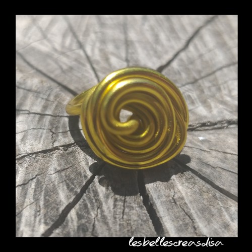 Bague aluminium doré réglable 96 , bague aluminium dorée femme , les belles créas d isa bague dorée réglable