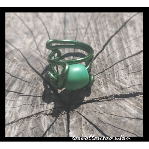 Bague unique et originale, bague verte, bague perle acrylique verte et fil aluminium vert foncé meta, bijoux femme mode et tendance , spécial rentrée, mode automne hiver, amour de perle